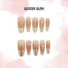 This design combines creamy nude and white bases with a pearlescent chrome finish that gives an icy silver sparkle to catch the light. Delicate silver bow charms near the cuticle add a touch of sweet, luxurious detail.